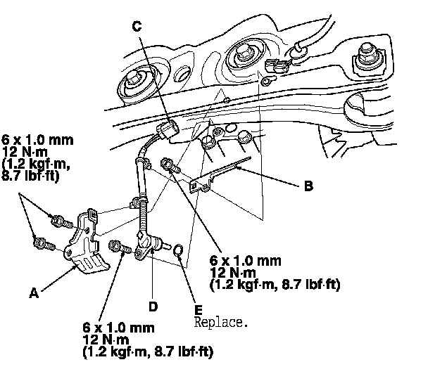 4. Install the differential fluid temperature sensor with a new O-ring (E) in the reverse order of removal.