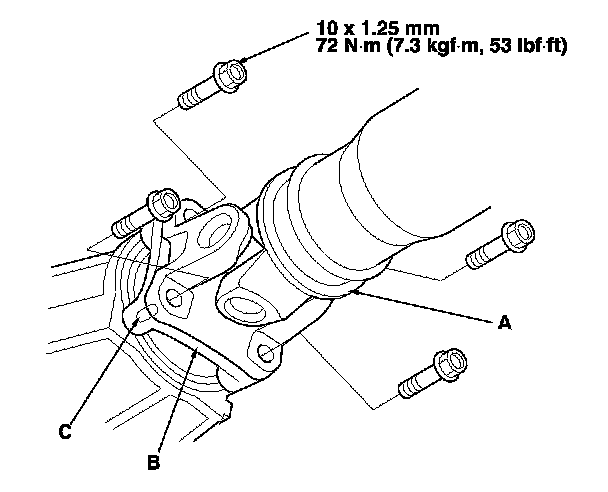 3. Install the propeller shaft (A) to the transfer companion flange (B) by aligning the reference mark (C).
