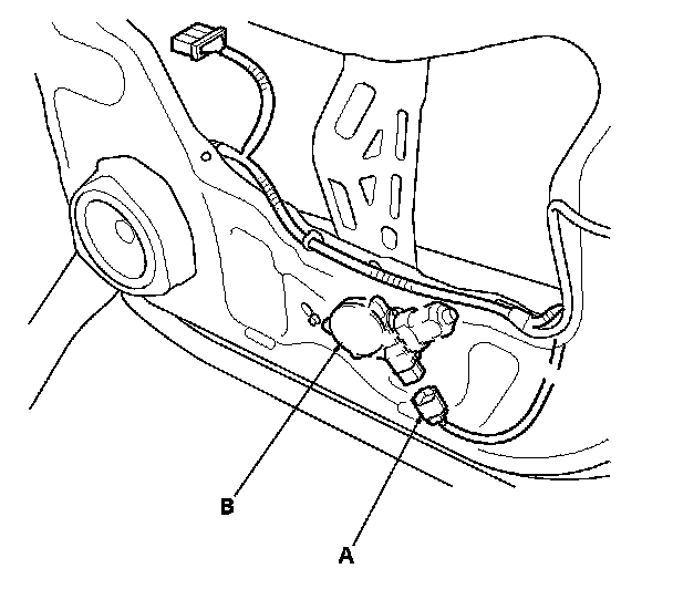 4. Disconnect the 6P connector (A) from the front passenger's power window motor (B).