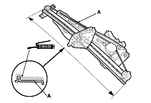 7. Apply multipurpose grease to all the sliding surfaces of the regulator (A) where shown.