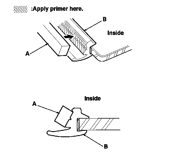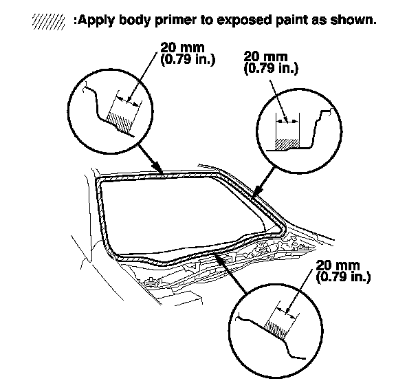 - Never touch the primed surfaces with your hands. If you do, the adhesive may not bond to the windshield properly, causing a leak after the windshield is installed.