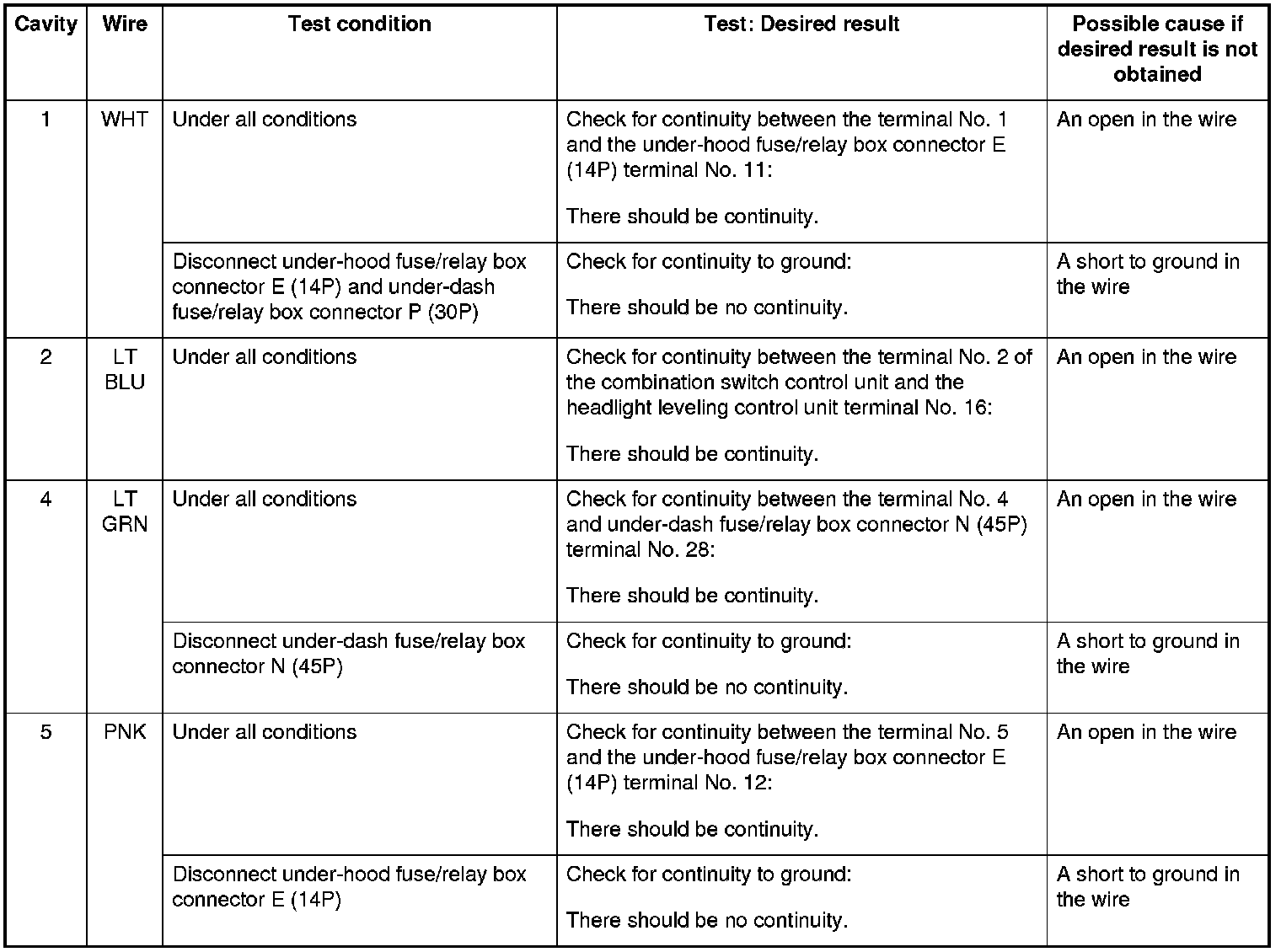 NOTE: Before testing the combination switch control unit, troubleshoot the multiplex integrated control unit first, using B-CAN System Diagnosis Test Mode A. Troubleshooting - B-CAN System Diagnosis Test Mode A