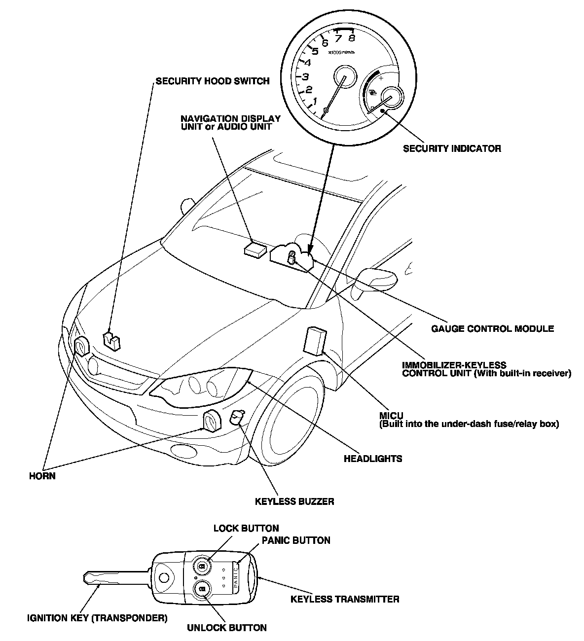 Keyless/Power Door Locks/Security System Component Location Index
