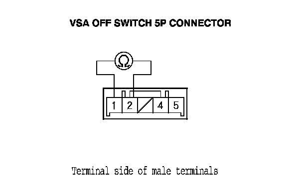 4. Check for continuity between VSA OFF switch 5P connector terminals No. 1 and No. 2. There should be continuity when the switch is pushed.