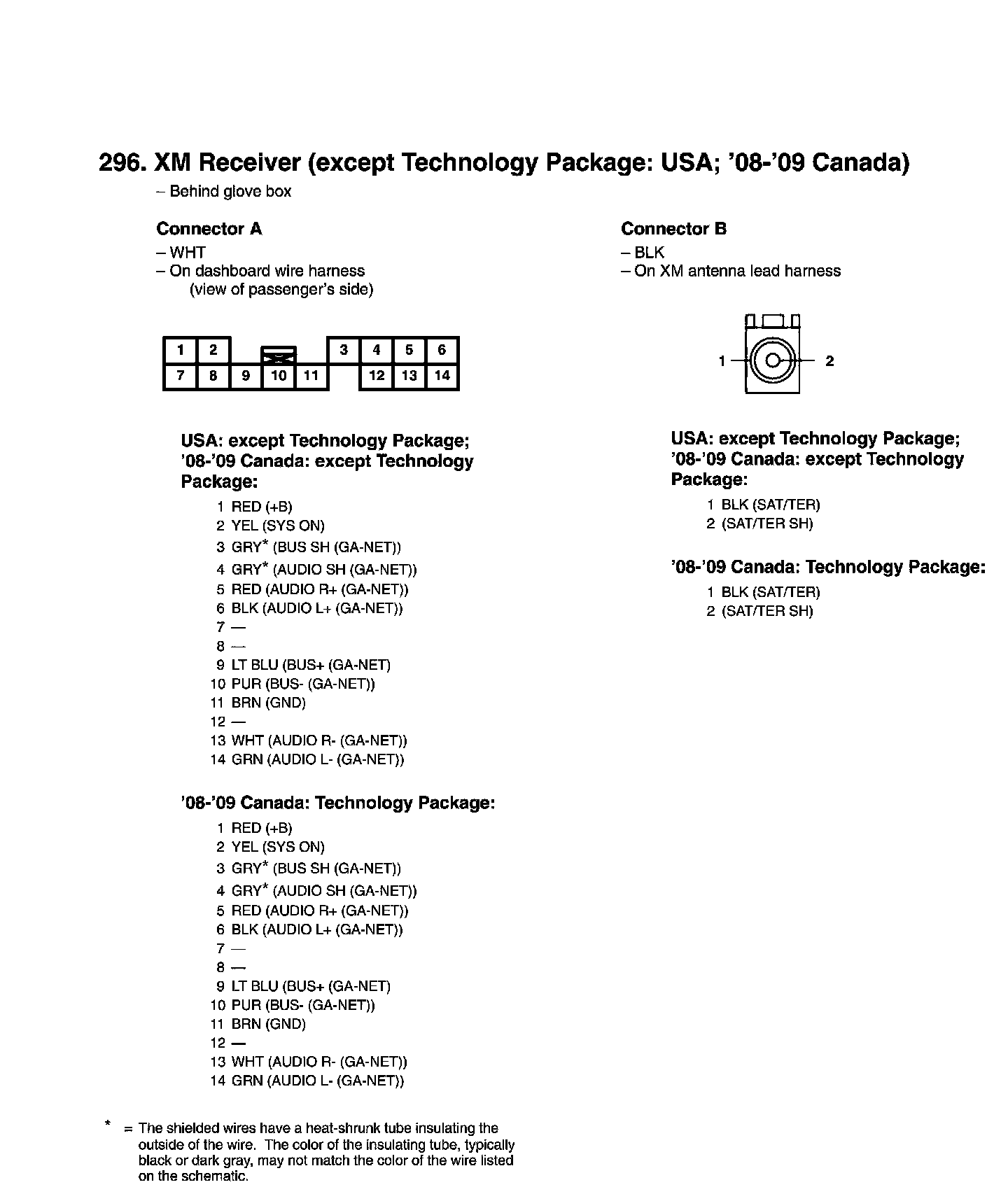 View 296 XM Receiver Connector View