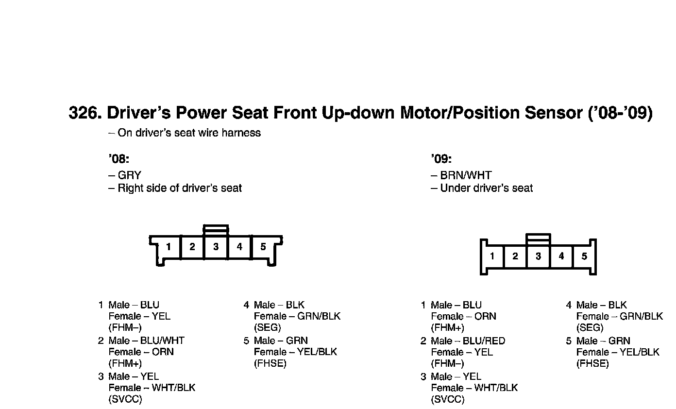 View 326 Driver's Power Seat Front Up-Down Motor/Position Sensor Connector View