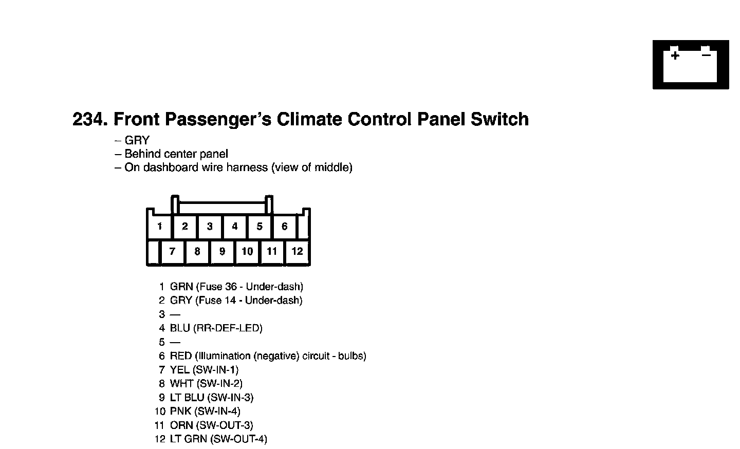 Front Passenger's Climate Control Panel Switch Connector View