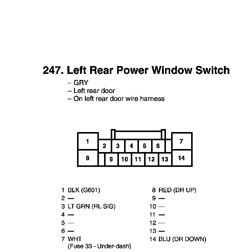 Left Rear Power Window Switch Connector View