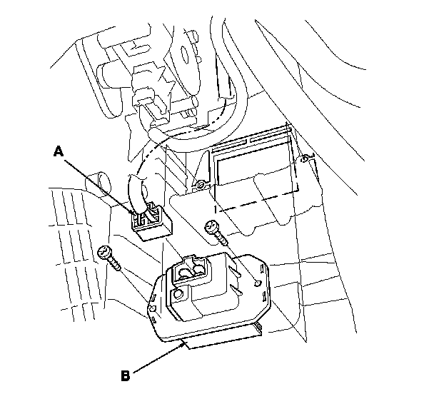 3. Disconnect the 4P connector (A) from the power transistor (B), then remove the screws.