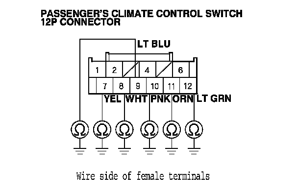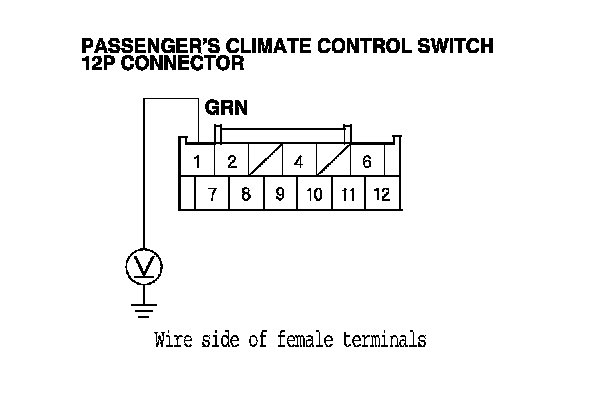 10. Check for continuity between body ground and the passenger's climate control switch 12P connector terminals as shown.