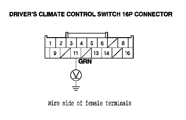 17. Measure the voltage between body ground and the driver's climate control switch 16P connector No. 11 terminal.