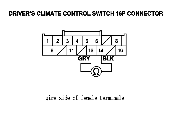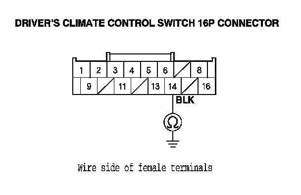 22. Check for continuity between driver's climate control switch 16P No. 13 and No. 14 terminals.