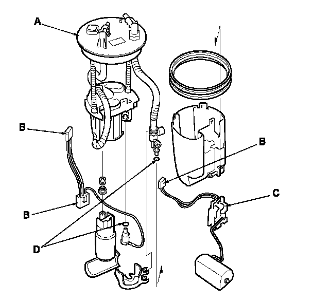 - When installing the fuel gauge sending unit (C), make sure the connection is secure and the connector is firmly locked into place. Be careful not to bend or twist it excessively.