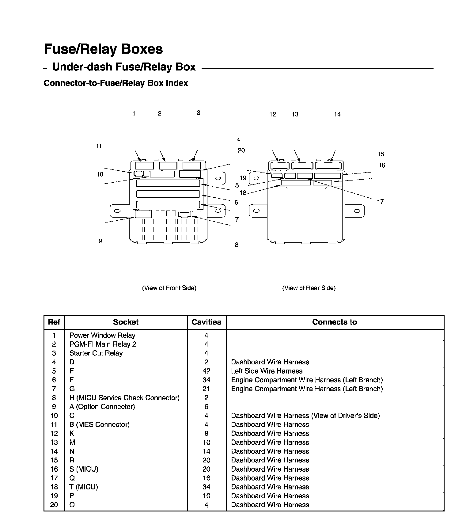 Under-dash Fuse/Relay Box - Connector-to-Fuse/Relay Box Index