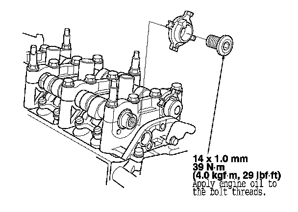 3. Hold the camshaft with an open-end wrench, then loosen the bolt.