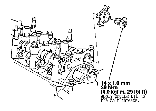 3. Hold the camshaft with an open-end wrench, then loosen the bolt.