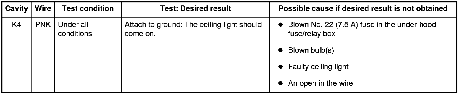 6. Reconnect the connectors to the under-dash fuse/relay box, and do these input tests at the following connectors.