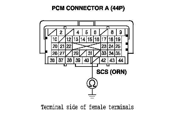 6. Disconnect PCM connector A (44P), then disconnect the HDS.