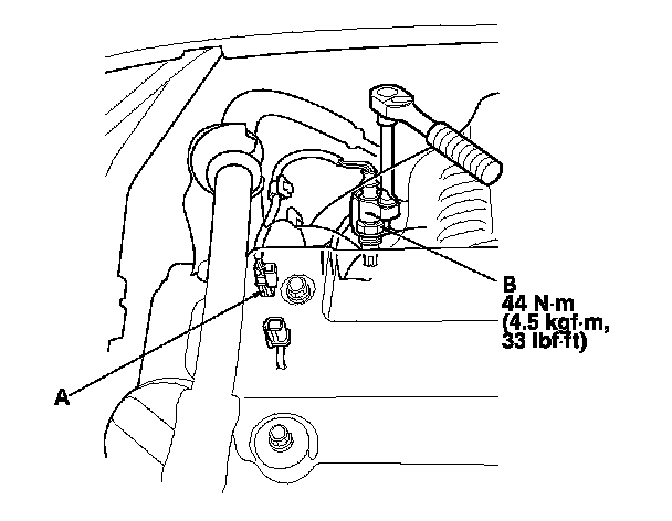 1. Disconnect the A/F sensor 4P connector (A), then remove the A/F sensor (B).