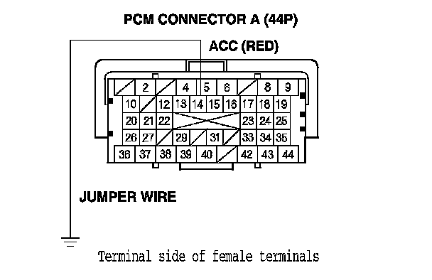 13. Momentarily connect PCM connector terminal A14 to body ground with a jumper wire several times.