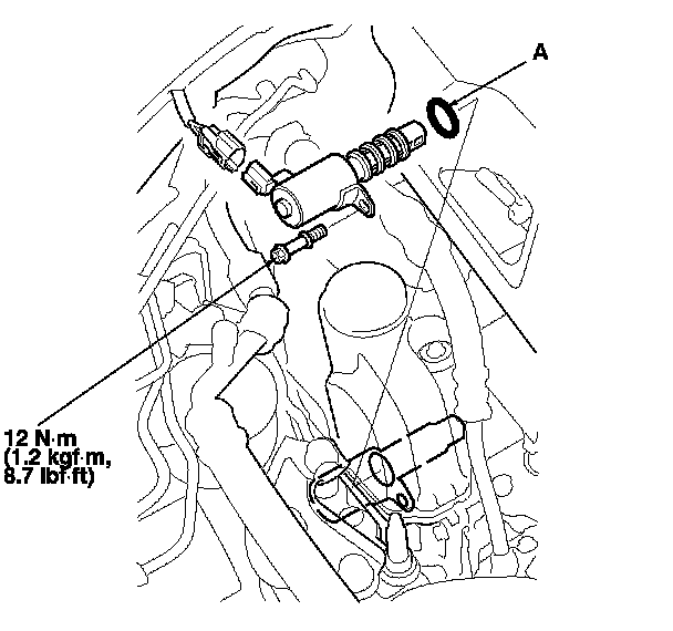 7. Coat a new O-ring (A) with engine oil, then install it.