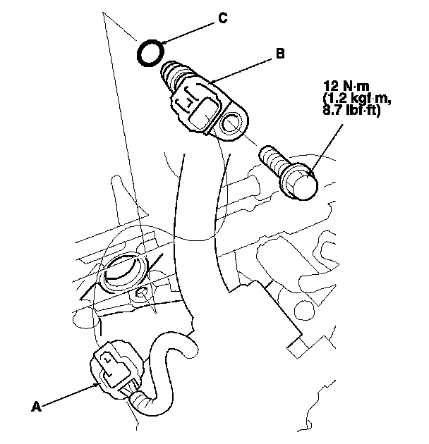 5. Install the parts in the reverse order of removal with a new O-ring (C).