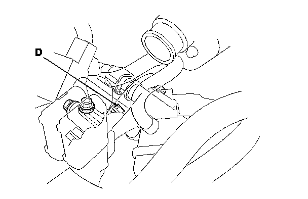 15. Upshift to 2nd gear by pulling the paddle shifter + (upshift switch), and measure the 2nd clutch pressure at the 2nd clutch pressure inspection port (D) while holding the engine speed at 2,000 rpm.