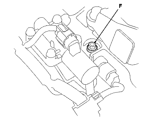 24. Upshift to 5th gear, and measure the 5th clutch pressure at the 5th clutch pressure inspection port (F) while holding the engine speed at 2,000 rpm.