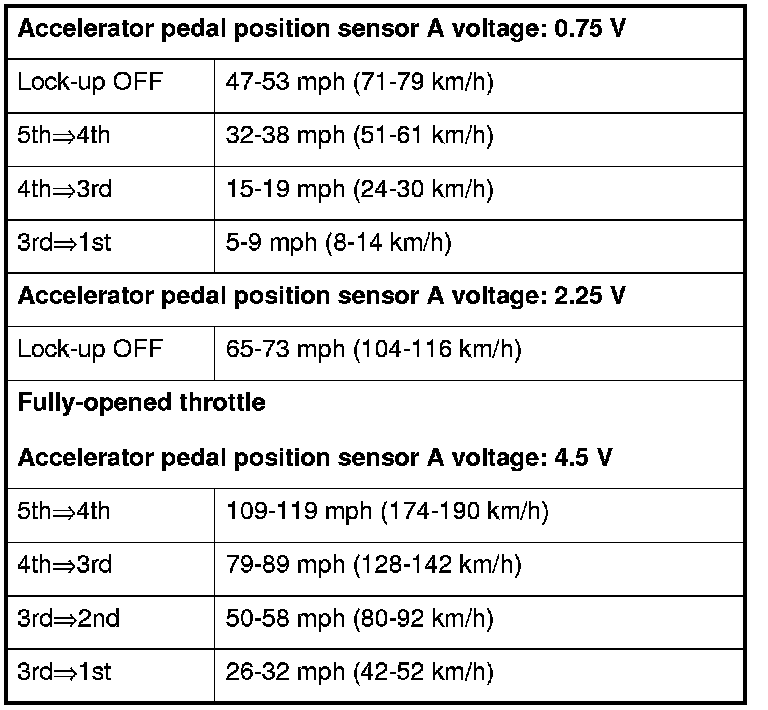 2. Apply the parking brake, and block both rear wheels. Start the engine, then shift to D while pressing the brake pedal. Press the accelerator pedal, and release it suddenly. The engine should not stall.