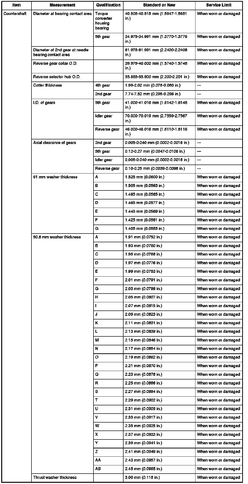 Countershaft Specifications