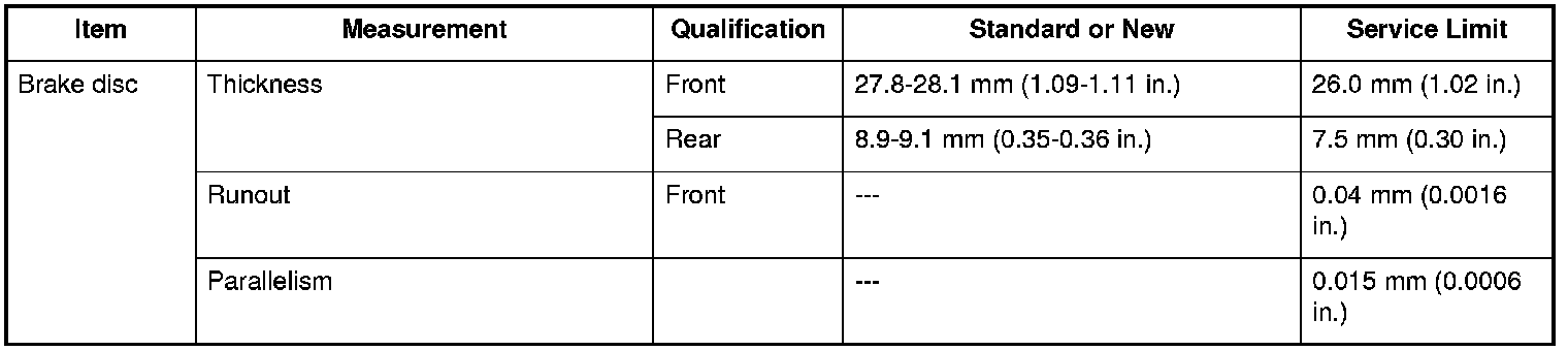 Brake Disc Specifications