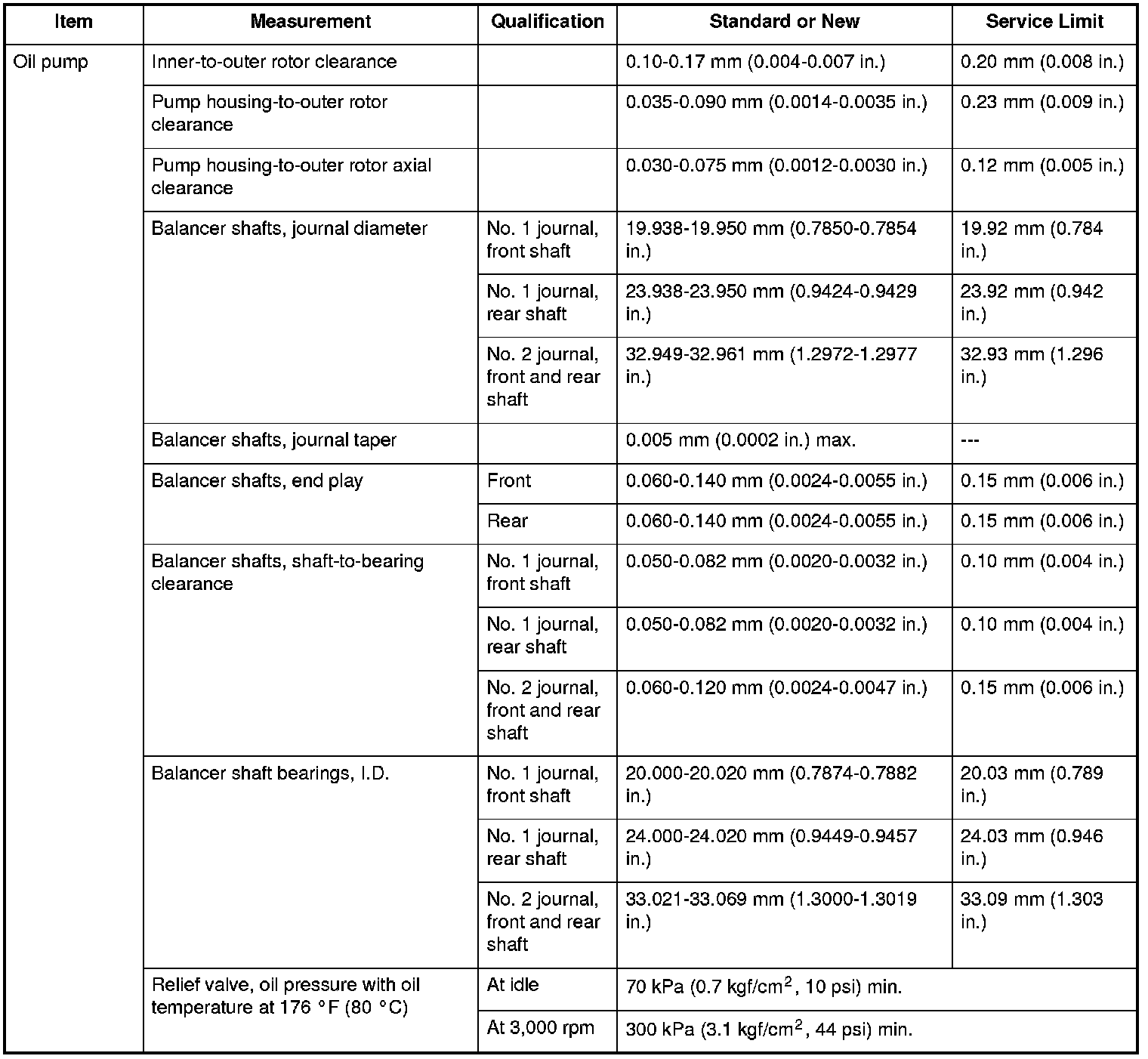 Oil pump Specifications