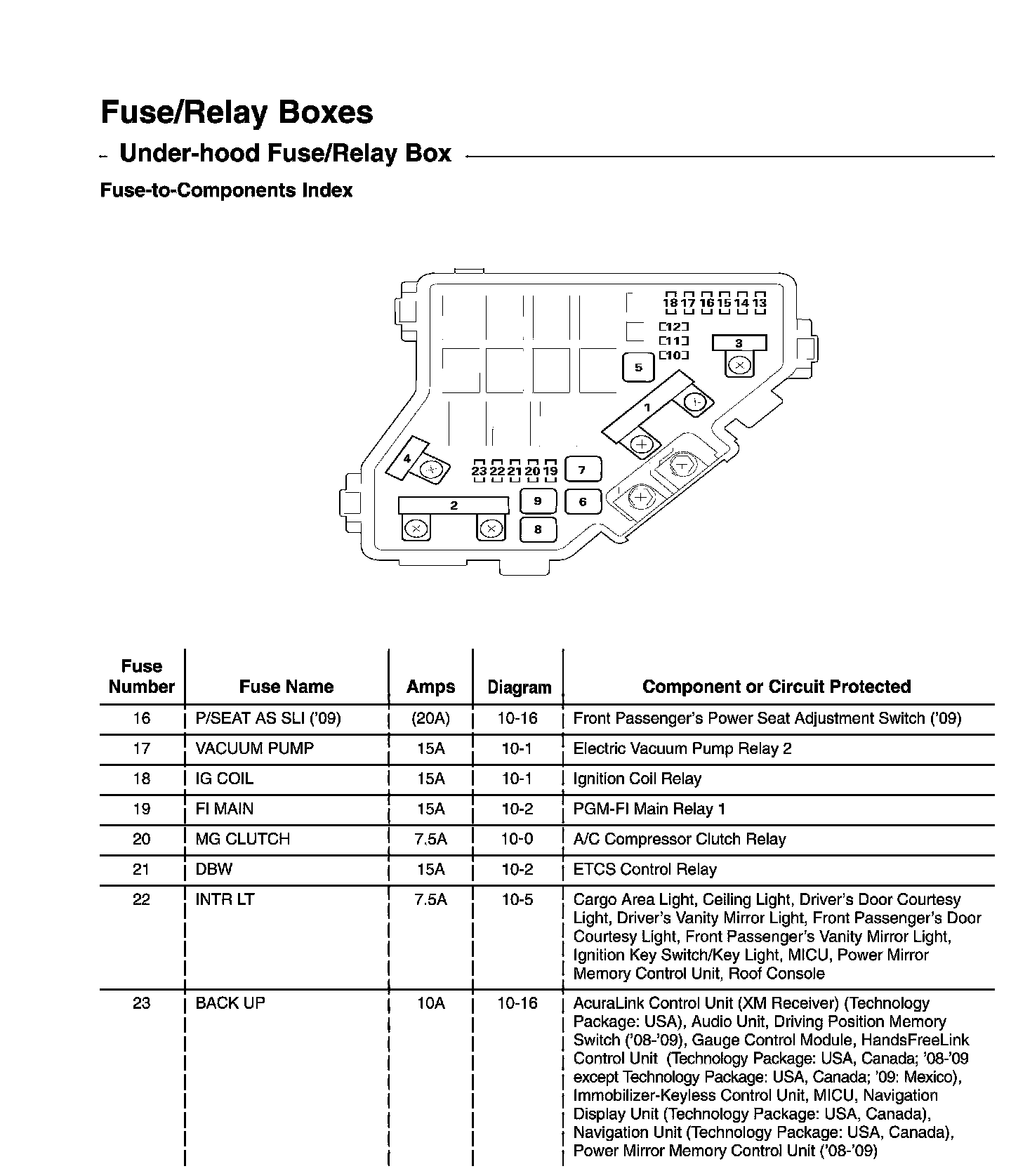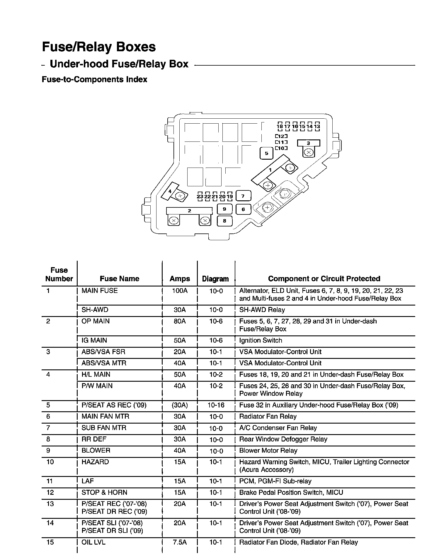 Under-Hood Fuse/Relay Box - Fuse-to-Components Index