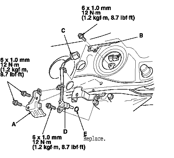 4. Install the differential fluid temperature sensor with a new O-ring (E) in the reverse order of removal.
