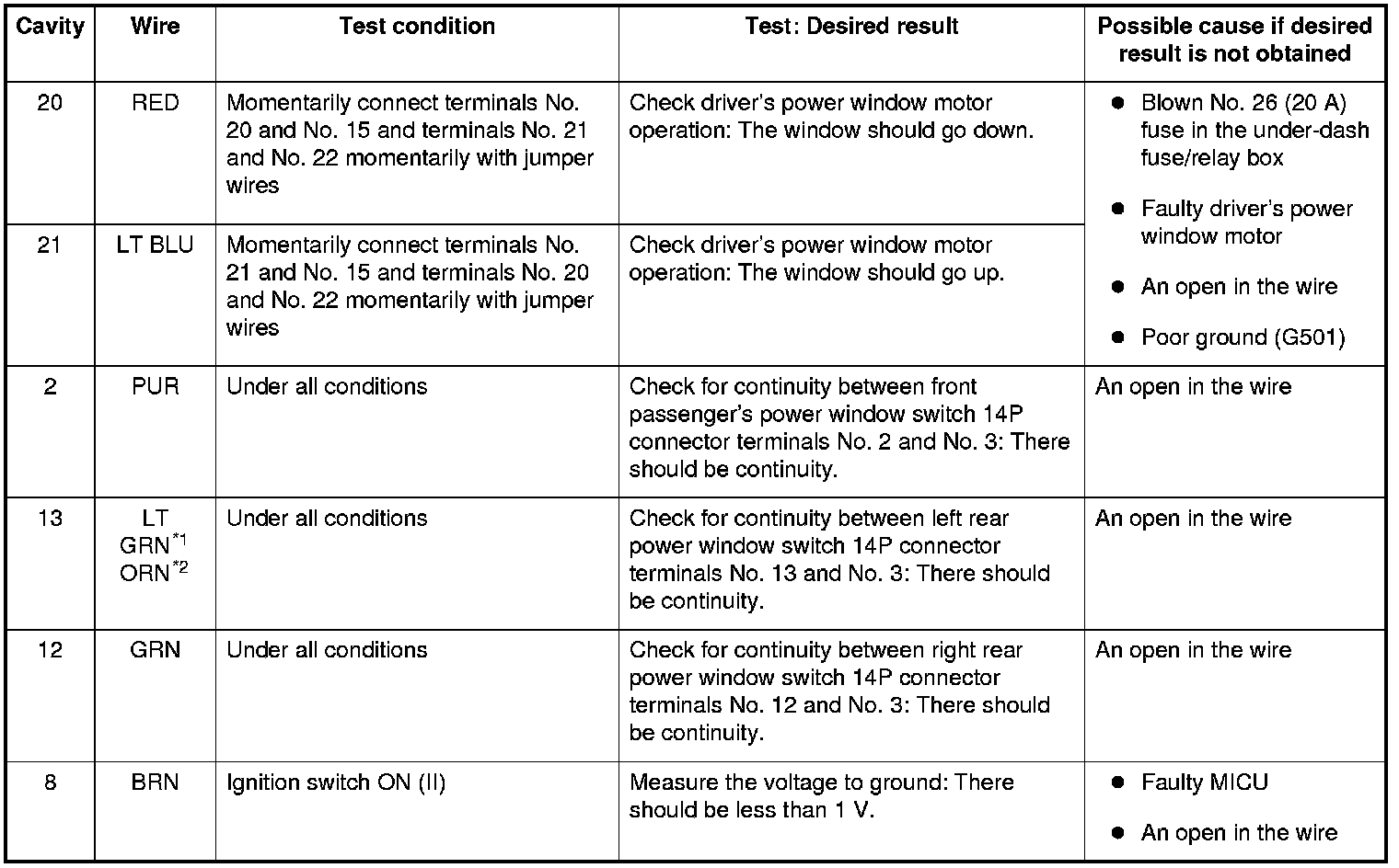 - If all the input tests prove OK, the control unit must be faulty; replace the power window master switch.
