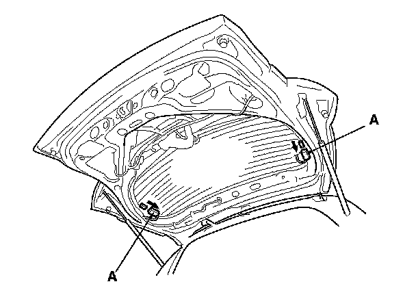 3. Disconnect the rear window defogger connectors (A).