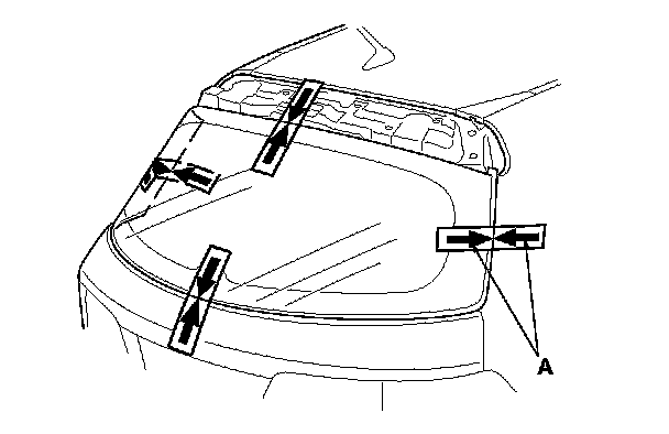 2. Remove the lower rubber dam (A) from the edge of the rear window. If necessary, cut the rubber dam with a utility knife.