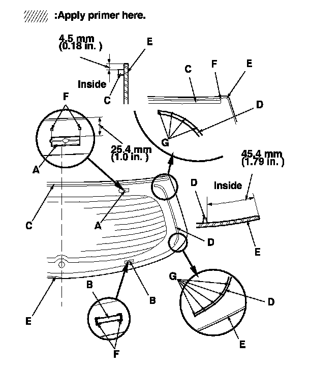- Do not apply body primer to any remaining original adhesive on the flange.