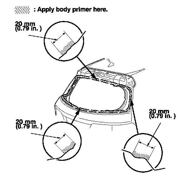 - Never touch the primed surfaces with your hands. If you do, the adhesive may not bond to the rear window properly, causing a leak after the rear window is installed.
