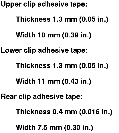 11. Attach the upper clip (A), the lower clip (B), and the rear clip (C) with adhesive tape to the inside face of the quarter glass (D) as shown.