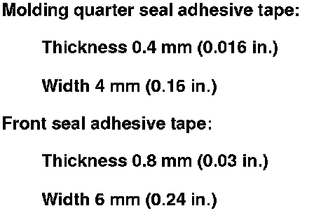 - First glue the molding quarter seal to the rear corner portion of the quarter glass, then glue the upper and lower portions of the seal around the edge of the quarter glass. Be sure the upper end and lower end of the molding quarter seal contacts the front seal.