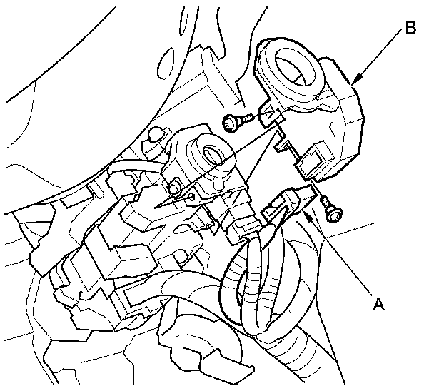 2. Disconnect the 7P connector (A) from the immobilizer-keyless control unit (B).