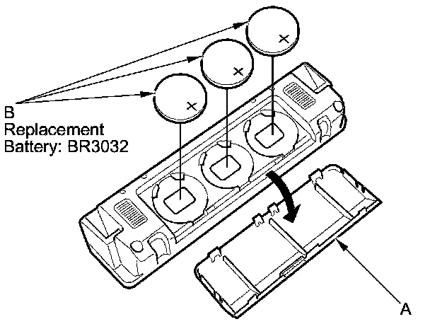 2. Remove the batteries (B).