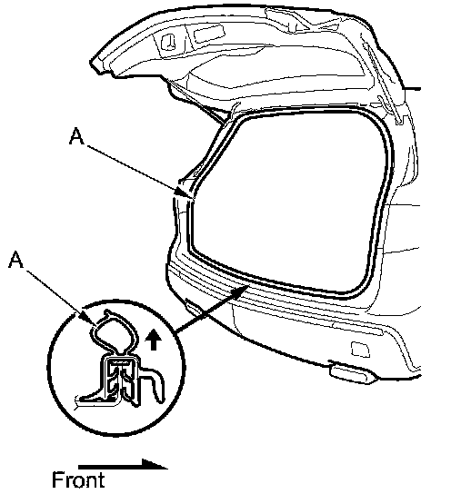3. Remove the tailgate weatherstrip (A) by pulling it out.