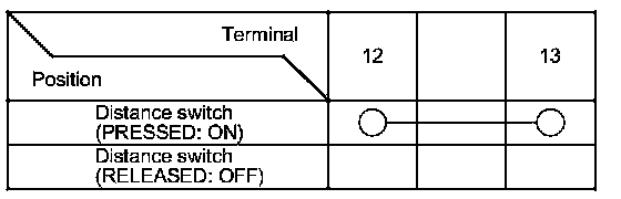 4. If the continuity is not as specified, replace the distance switch Adaptive Cruise Control (ACC) Combination Switch/Distance Switch Removal/Installation.
