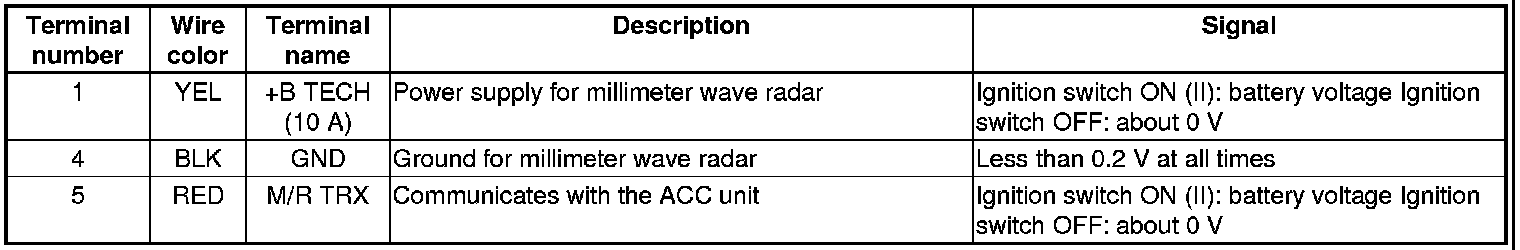 The millimeter wave radar has a self-diagnostic function; it sends this information to the ACC unit.