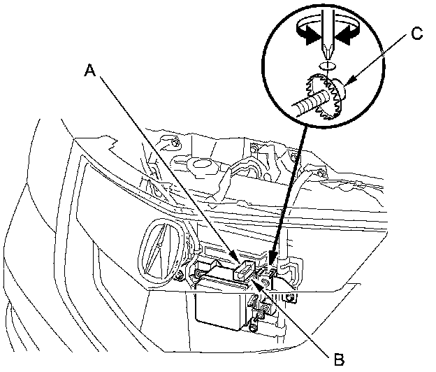 3. Turn the vertical adjusting bolt (C) on the driver's side with a screwdriver, and adjust the angle of millimeter wave radar so that the air bubble in the level is centered.