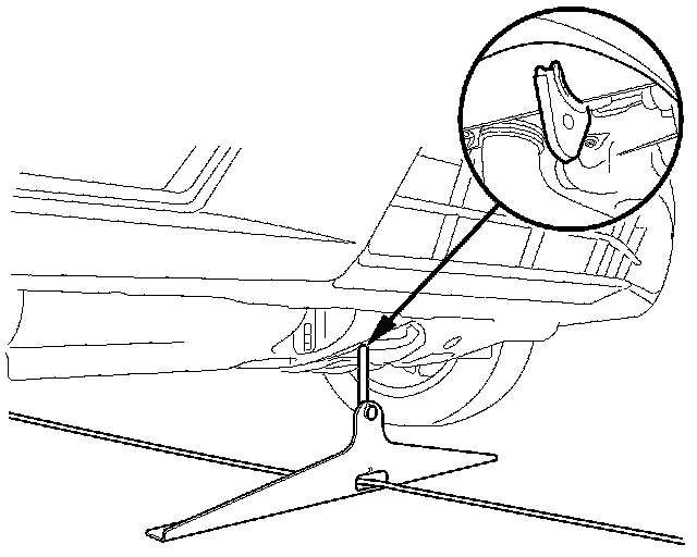 7. Rear area of the vehicle: Position the gas strut holder between the rear jack point and the mark on the floor.