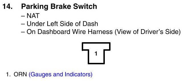 View 14 - Parking Brake Switch Connector View