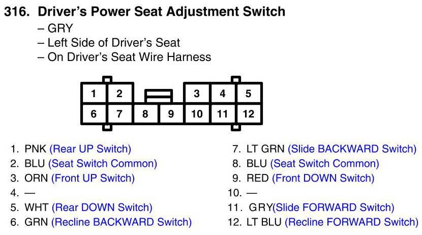 View 316 - Driver's Power Seat Adjustment Switch Connector View